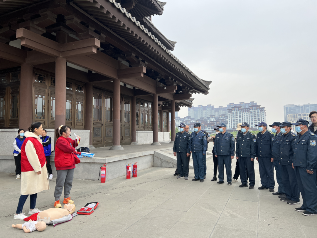 為保障齊盛湖公園五一節(jié)假日安全,提升安保隊(duì)員應(yīng)急處突能力,保障游客生命財(cái)產(chǎn)安全,4月25日,市保安公司在齊盛湖公園海岱樓廣場開展消防、應(yīng)急救援心肺復(fù)蘇等培訓(xùn)演練活動(dòng)。