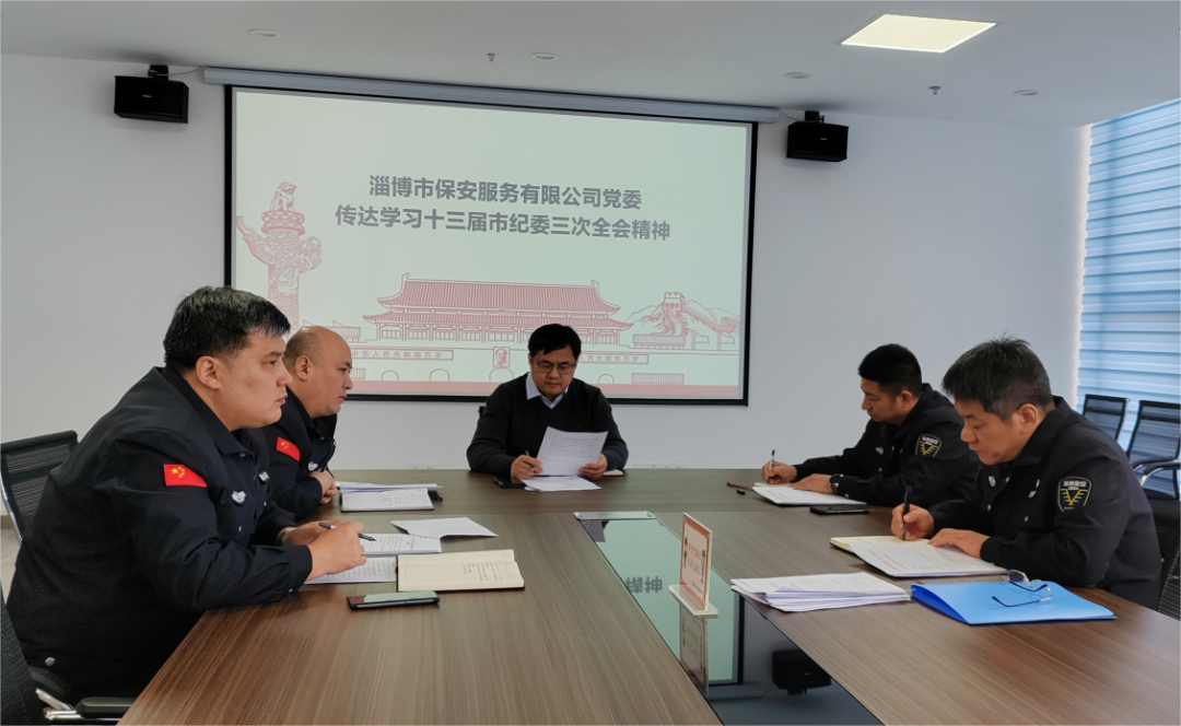 近期,市保安公司召開黨委會議,傳達(dá)學(xué)習(xí)十三屆市紀(jì)委三次全會精神。公司黨委書記、董事長付志欣同志主持會議并講話,班子成員參加會議。