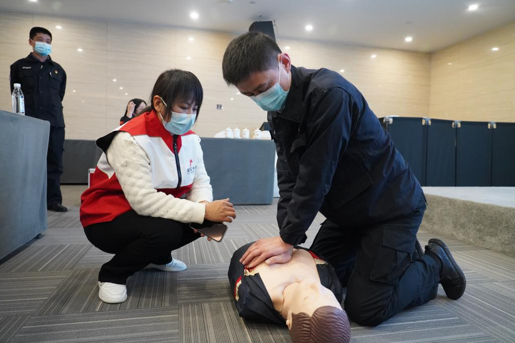 本次培訓(xùn)邀請(qǐng)淄博市紅十字會(huì)專業(yè)人員擔(dān)任授課老師,針對(duì)急救的意義、急救的黃金時(shí)間、急救時(shí)對(duì)病人的病情分析和處理方法等做了詳細(xì)介紹,并通過(guò)人物模型現(xiàn)場(chǎng)演練,講解了心肺復(fù)蘇的操作過(guò)程、AED的正確操作方法和氣道異物梗阻正確處理辦法。經(jīng)過(guò)生動(dòng)的講解和實(shí)地操作,為學(xué)員們帶來(lái)了一堂實(shí)用的應(yīng)急救護(hù)知識(shí)培訓(xùn)。