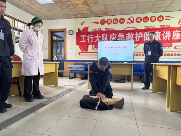 為進一步提高基層員工面對突發(fā)疾病的應(yīng)急處置能力,近日,金融護衛(wèi)中心工行大隊特邀湖田中心醫(yī)院醫(yī)生,在大隊駐地開展應(yīng)急救護健康講座。 講座現(xiàn)場,醫(yī)生認真細致地講解了心肺復蘇的基本流程和步驟,并對徒手心肺復蘇操作要領(lǐng)進行了重點說明。隨后現(xiàn)場演示了胸外心臟按壓、清理口腔異物、開放氣道、人工呼吸,并對心肺復蘇按壓深度、按壓頻率等重點環(huán)節(jié)的操作要領(lǐng)和流程逐一進行講解和示范。隊員們積極參與,現(xiàn)場體驗徒手心肺復蘇操作,確保此次活動取得實效。 工行大隊將持續(xù)深化關(guān)心關(guān)愛基層職工工作,不斷提升職工應(yīng)對突發(fā)緊急事件的自救和處置能力,增強職工的獲得感、幸福感。