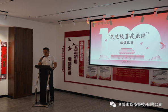 為慶祝中國共產(chǎn)黨成立100周年,回顧黨的百年奮進歲月,引導干部職工學黨史、知黨恩、跟黨走,感悟黨的光輝歷程,傳承黨的優(yōu)良傳統(tǒng),進一步推動黨史學習教育走深走實,淄博市保安服務有限公司黨委于7月15日下午舉辦“黨史故事我來講”專題演講比賽。